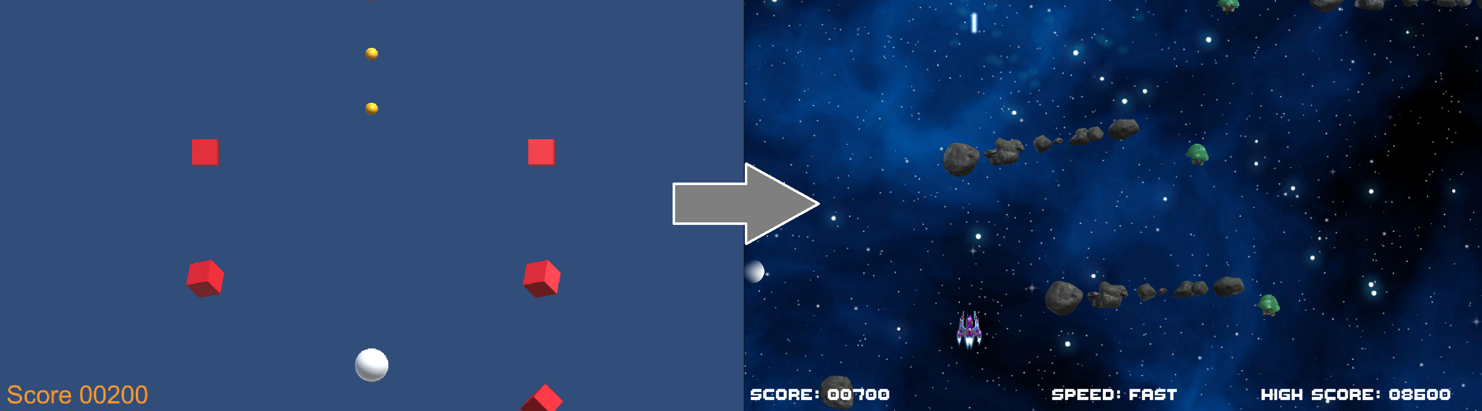 Second part was to take this small Unity scene with a prototype of a Shoot-em Up game, and make it a "full game".